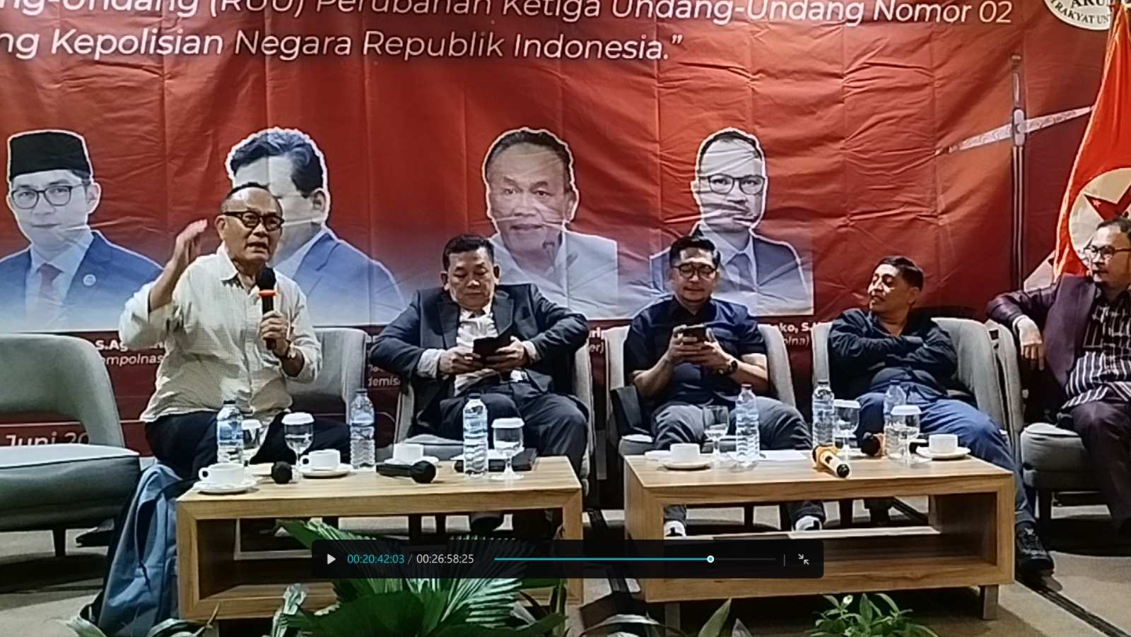 ARUN (Advokasi Rakyat untuk Nuswantara) menggelar Diskusi Publik Tentang RUU POLRI, dengan mengahadirkan 3 Nara sumber yaitu Dr. Yusuf Warsim, S.Ag, S.H., M.H dari Kompolnas, Dr. H. Abdul Chair Ramadhan, S.H., M.H dari akademisi sekaligus Ketua Asosiasi Doktor Hukum se Indonesia Mayjen TNI (Purn) Dr. Saurip Kadi mantan Tim Penyususn Reformasi Internal ABRI.