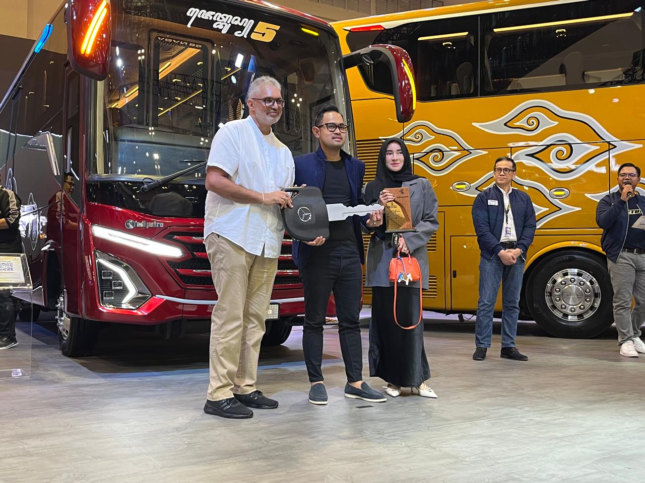 Hari ini Sabtu 20 Juii 2024 di ajang pameran otomotif GIIAS 2024, Juragan99 Trans menerima unit bus baru yang istimewa dengan tipe Jetbus 5MD, bus berukuran medium yang masuk ke dalam klasifikasi luxury class. Serah terima dilakukan oleh karoseri PT Adiputro Wirasejati bersama PT Daimler Commercial Vehicles Indonesia (DCVI), langsung kepada founder Juragan 99 Trans, Gilang W. Pramana alias Juragan 99.