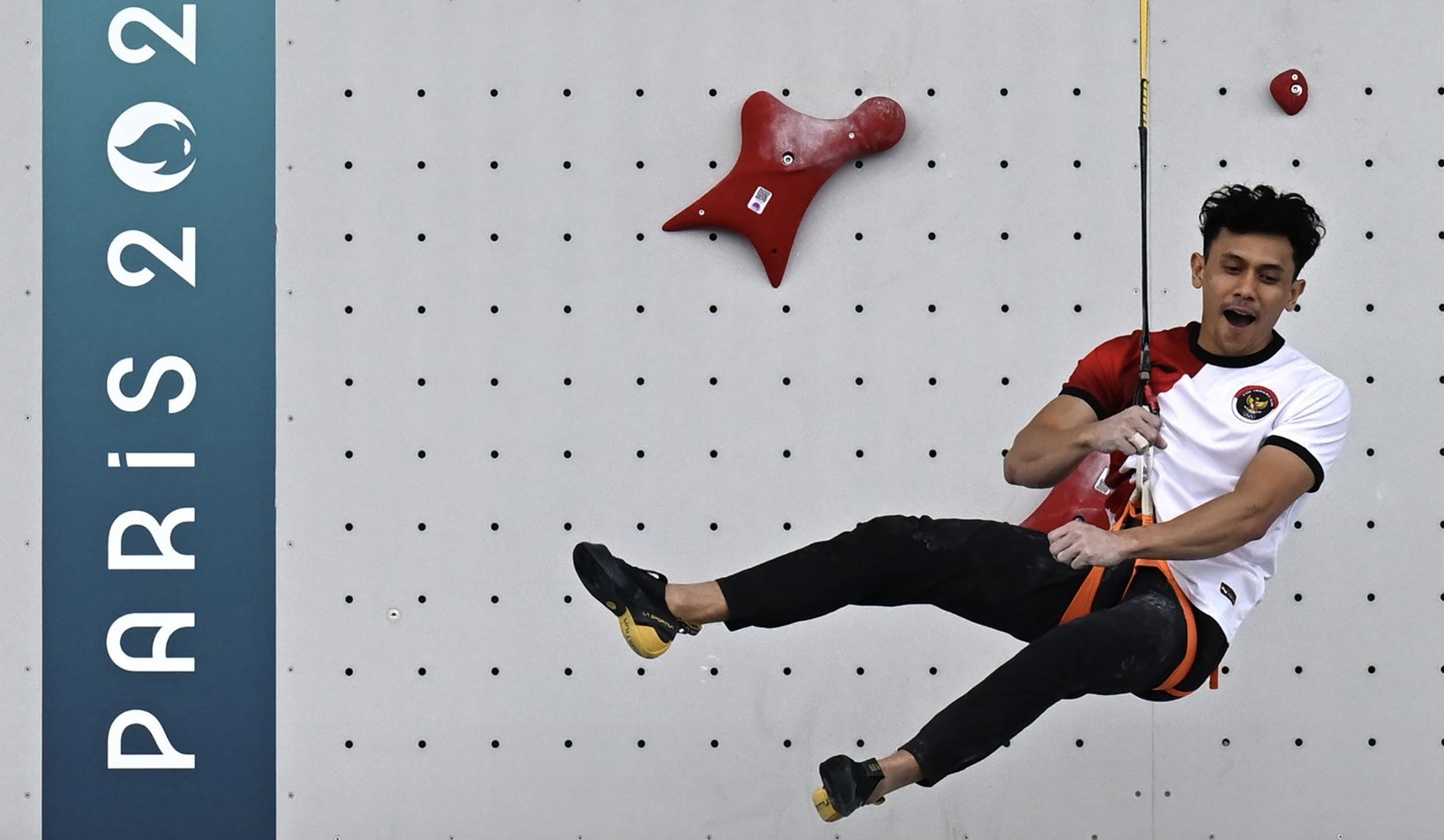 Veddriq Leonardo mengalahkan atlet China, dengan catatan waktu 4,75 detik di final panjang tebing kategori speed.
