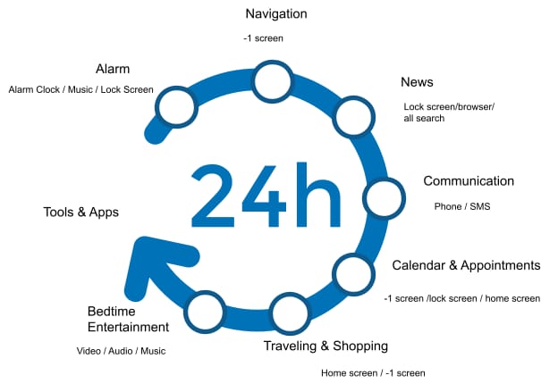 Hal ini dilakukan melalui beberapa titik kontak di sepanjang perjalanan pengguna, termasuk tetapi tidak terbatas pada iklan layar kunci, iklan di umpan berita ponsel yang terintegrasi dengan umpan berita itu sendiri, iklan splash yang muncul saat pengguna meluncurkan salah satu aplikasi sistem OEM seperti aplikasi jam, video, atau musik, dan iklan notifikasi.