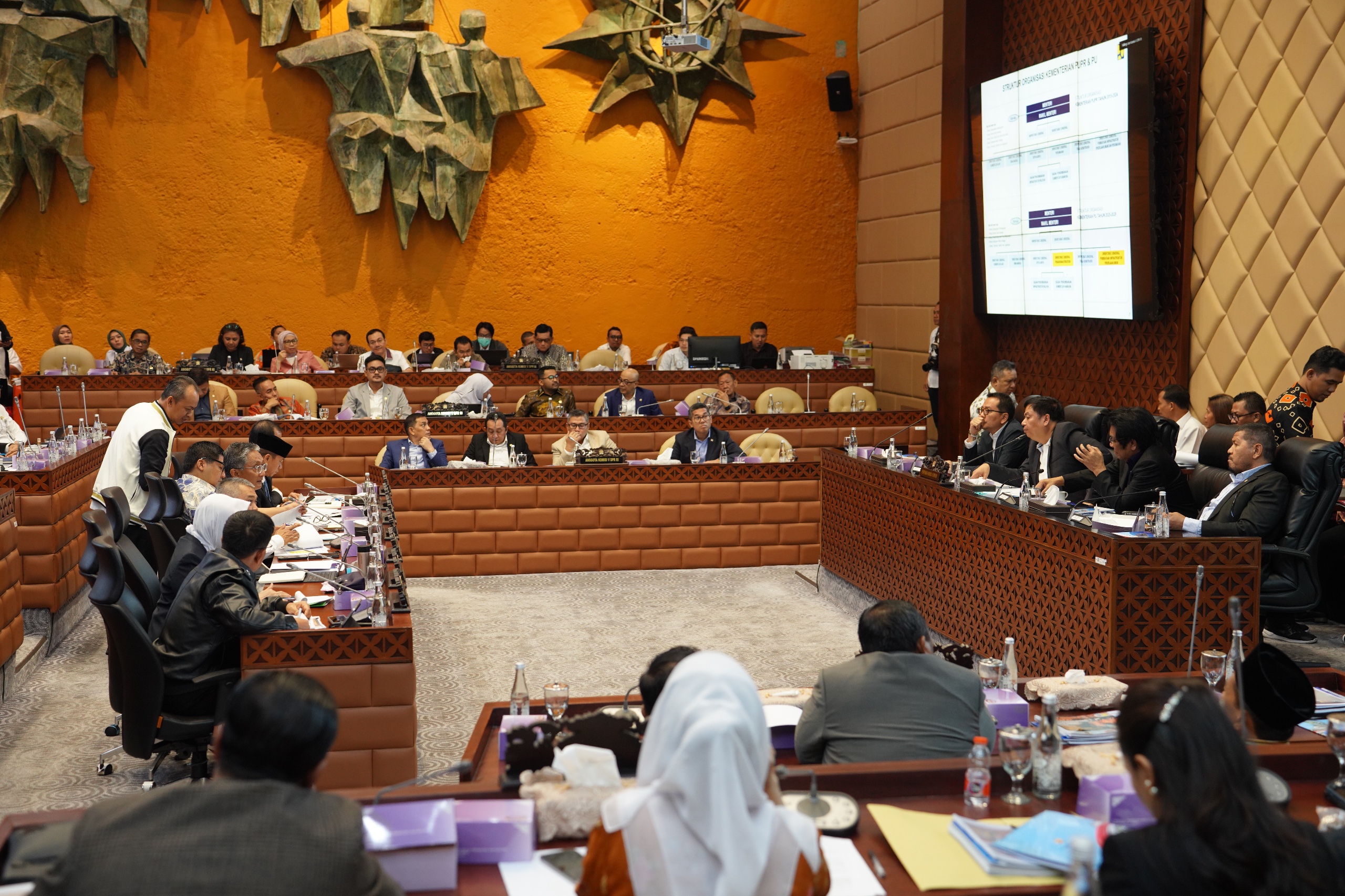 INAnews.co.id, Jakarta– Menteri Pekerjaan Umum (PU) Dody Hanggodo didampingi para Pejabat Tinggi Madya dan Pratama di lingkungan Kementerian PU menghadiri Rapat Kerja Komisi V DPR RI mengenai Perkenalan dan Penjelasan Tugas Pokok dan Fungsi Kementerian PU. Rapat kerja tersebut diselenggarakan di Gedung DPR RI, Selasa (29/10/2024), dan juga dihadiri oleh mitra kerja Komisi V DPR RI yang lain seperti Kementerian Perumahan dan Kawasan Permukiman, Kementerian Perhubungan, Kementerian Desa dan Pembangunan Daerah Tertinggal (PDT), Kementerian Transmigrasi, BMKG, dan BNPP/ Basarnas.