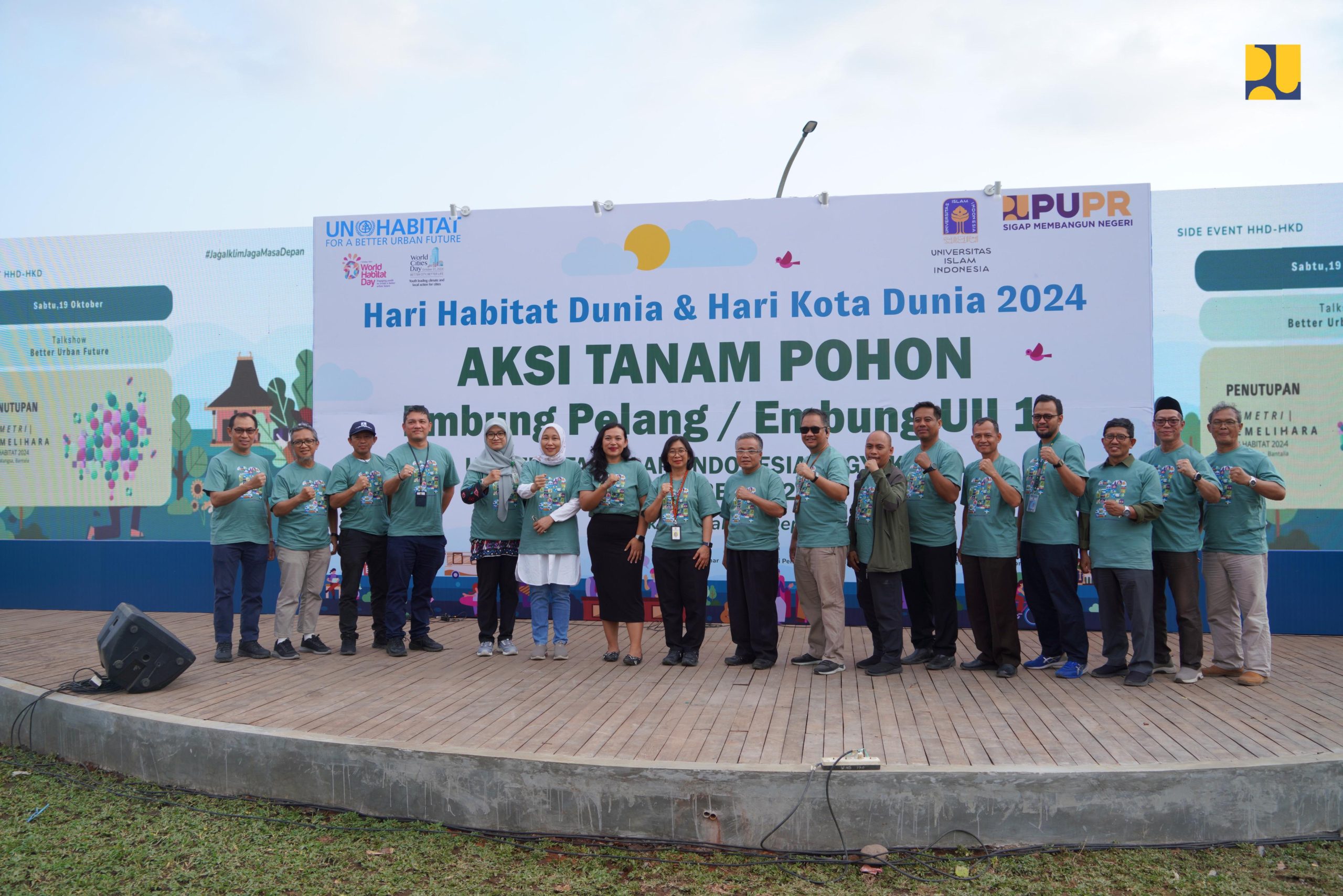 INAnews.co.id, Sleman– Melanjutkan rangkaian Hari Habitat Dunia-Hari Habitat Dunia (HHD-HKD) 2024, Kementerian Pekerjaan Umum dan Perumahan Rakyat (PUPR) melakukan kegiatan penanaman pohon di 34 provinsi. Salah satunya di Embung Pelang Universitas Islam Indonesia, Provinsi Daerah Istimewa Yogyakarta, Kamis (10/10/2024).