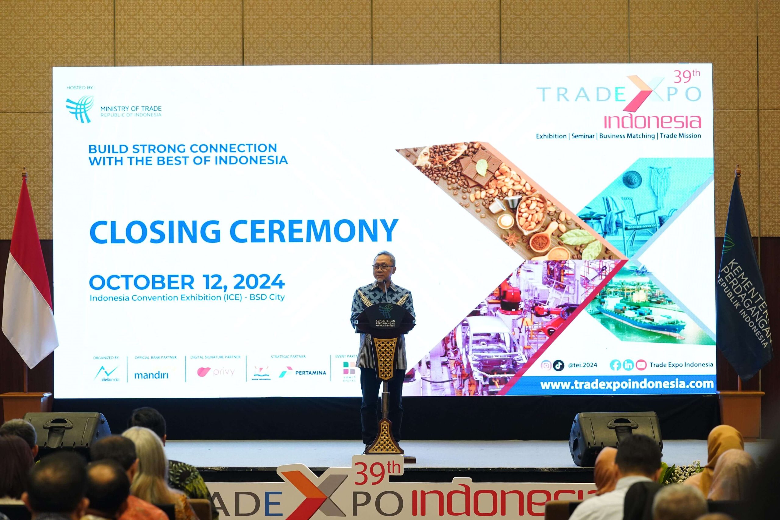 INAnews.co.id, Jakarta – Menteri Perdagangan Zulkifli Hasan resmi menutup gelaran Trade Expo Indonesia (TEI) ke-39 pada Sabtu, (12/10), di Indonesia Exhibition Center (ICE) Bumi Serpong Damai (BSD), Tangerang, Banten.