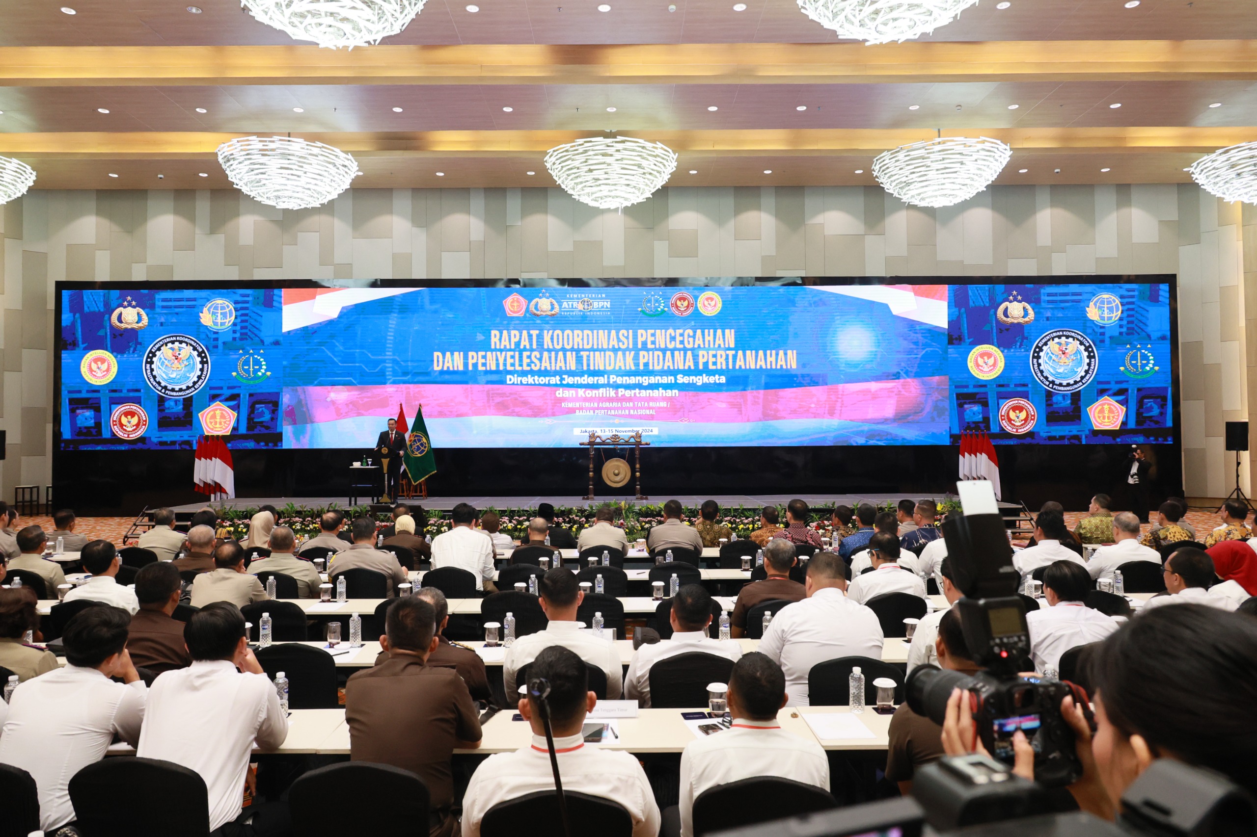 INAnews.co.id, Jakarta– Menteri Koordinator Bidang Infrastruktur dan Pembangunan Kewilayahan, Agus Harimurti Yudhoyono (AHY) membuka Rapat Koordinasi (Rakor) Penyelesaian Tindak Pidana Pertanahan Tahun 2024 yang ditandai dengan pemukulan gong pada Kamis (14/11/2024), di Grand Mercure Kemayoran, Jakarta. Dalam sambutannya, Menko AHY menyampaikan bahwa Kementerian Agraria dan Tata Ruang/Badan Pertanahan Nasional (ATR/BPN) menunjukkan komitmen menyelesaikan persoalan pertanahan, dengan tidak tebang pilih dalam proses penyelesaiannya.