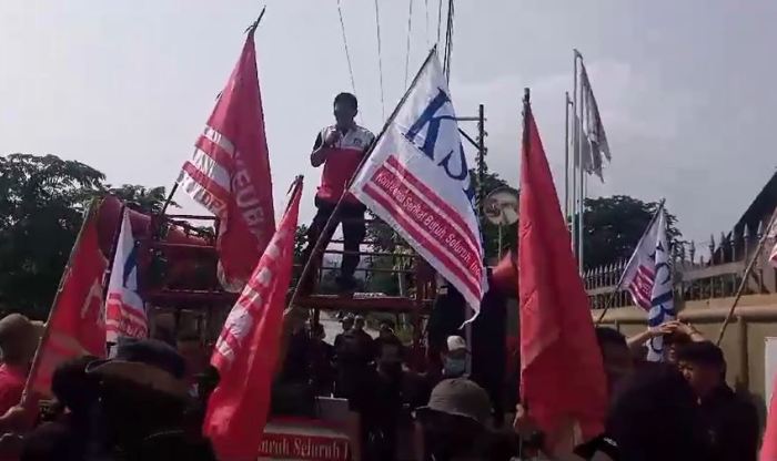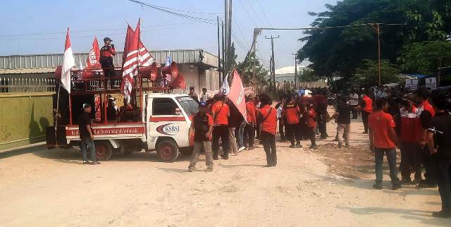 “Sebelum melakukan aksi, pastinya buruh sudah melakukan tembusan ke pihak Dinas Tenaga Kerja tapi sampai saat ini belum ada respon apa-apa,” kata Eka.