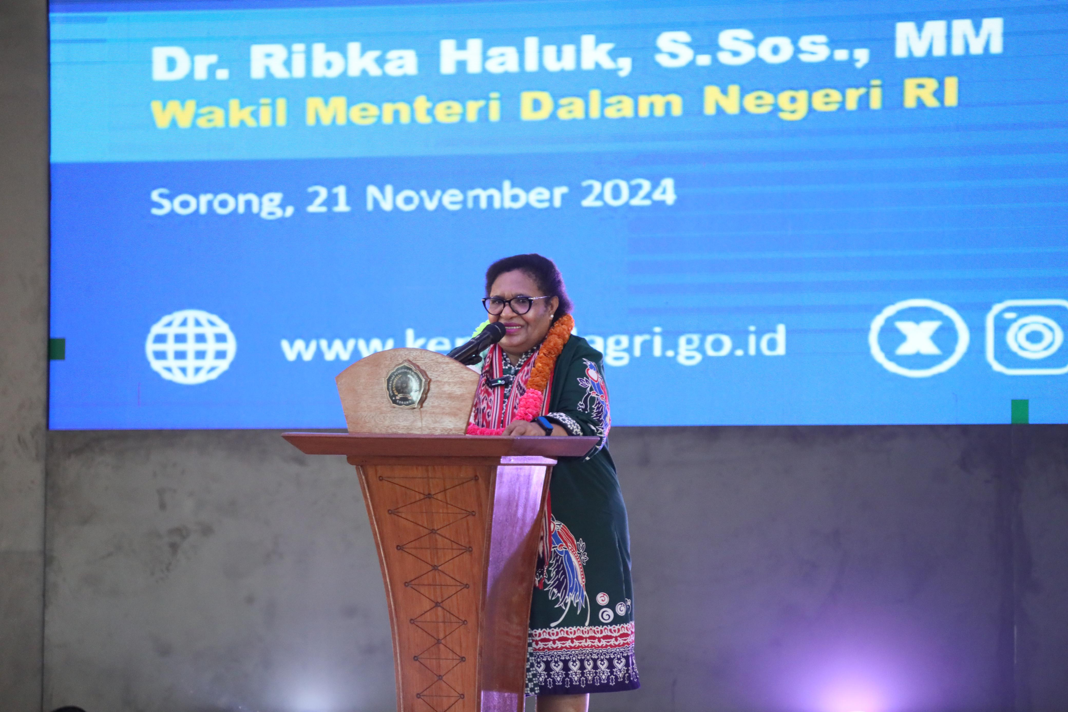 INAnews.co.id, Sorong– Wakil Menteri Dalam Negeri (Wamendagri) Ribka Haluk mendorong setiap provinsi di wilayah Papua agar memiliki perguruan tinggi yang representatif untuk menampung anak-anak Papua yang hendak belajar. Keberadaan infrastruktur ini penting termasuk bagi Daerah Otonom Baru (DOB) Papua.