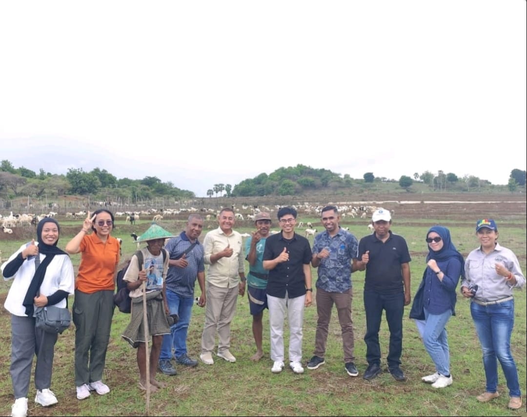 Setelah pertemuan, tim melanjutkan kunjungan lapangan untuk melihat langsung domba Rote, yang menjadi salah satu fokus pengembangan breeding center.