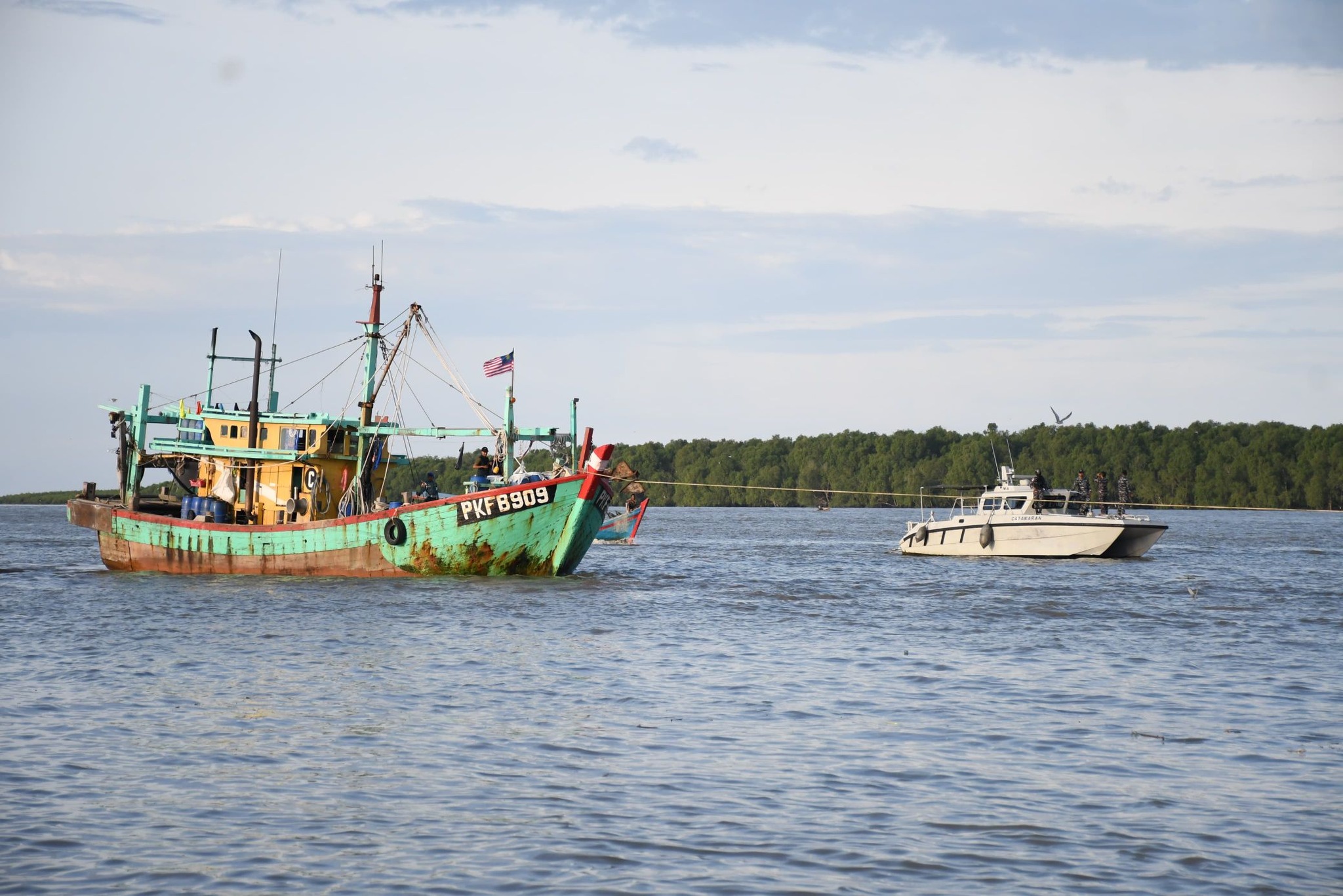 Kapal yang ditangkap bernomor registrasi PKFB909, GT 54,96, bendera Malaysia. Nahkoda berinisial MYO (40 tahun).