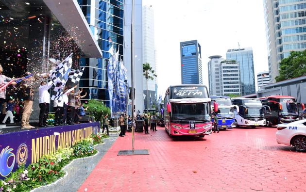 INAnews.co.id, Jakarta– Sebanyak 34 bus diberangkatkan untuk mudik bareng lintas empat kementerian dengan tujuan tersebar ke tujuh kota, yakni Padang, Palembang, Lampung, Surakarta, Yogyakarta, Semarang, dan Surabaya.