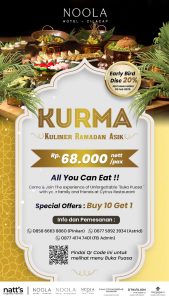 Jangan lewatkan kesempatan spesial ini untuk menikmati kuliner Ramadhan yang penuh cita rasa hanya di Noola Hotel Cilacap! Segera buat reservasi Anda dan nikmati “Kurma: Kuliner Ramadhan Asik” bersama orang-orang tercinta.