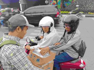 Hal ini membuat pengendara roda dua yang kebetulan sedang melintas menjadi melambatkan laju motornya karena ada keramaian, Para pengendara motor berhenti sesaat karena ada kegiatan PRIA MASJID RIDE sedang mengadakan kegiatan sosial berbagi takjil. Kegiatan sosial ini dilakukan dengan niat dan tulus dan ikhlas untuk berbagi di bulan yang penuh berkah ini.