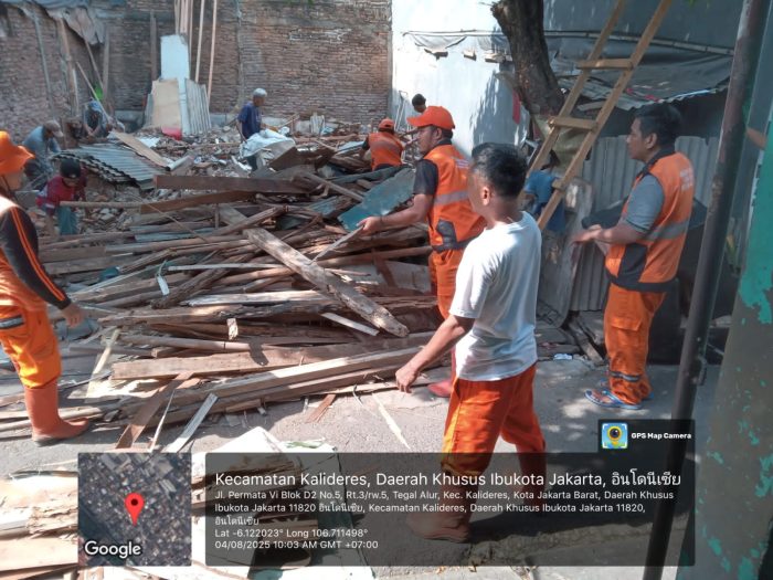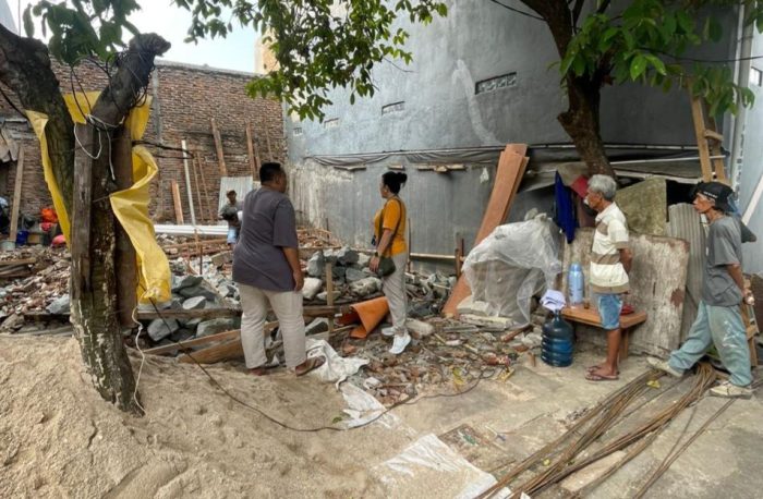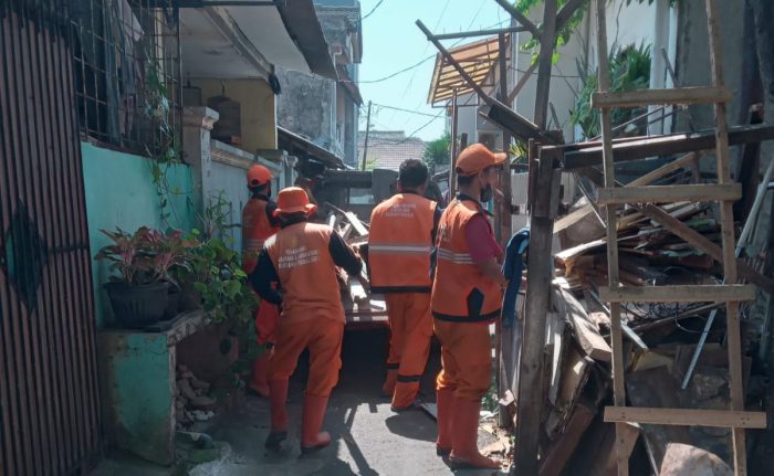 Petugas PPSU Tegal Alur saat membantu proses bedah rumah ( foto : INAnews)
