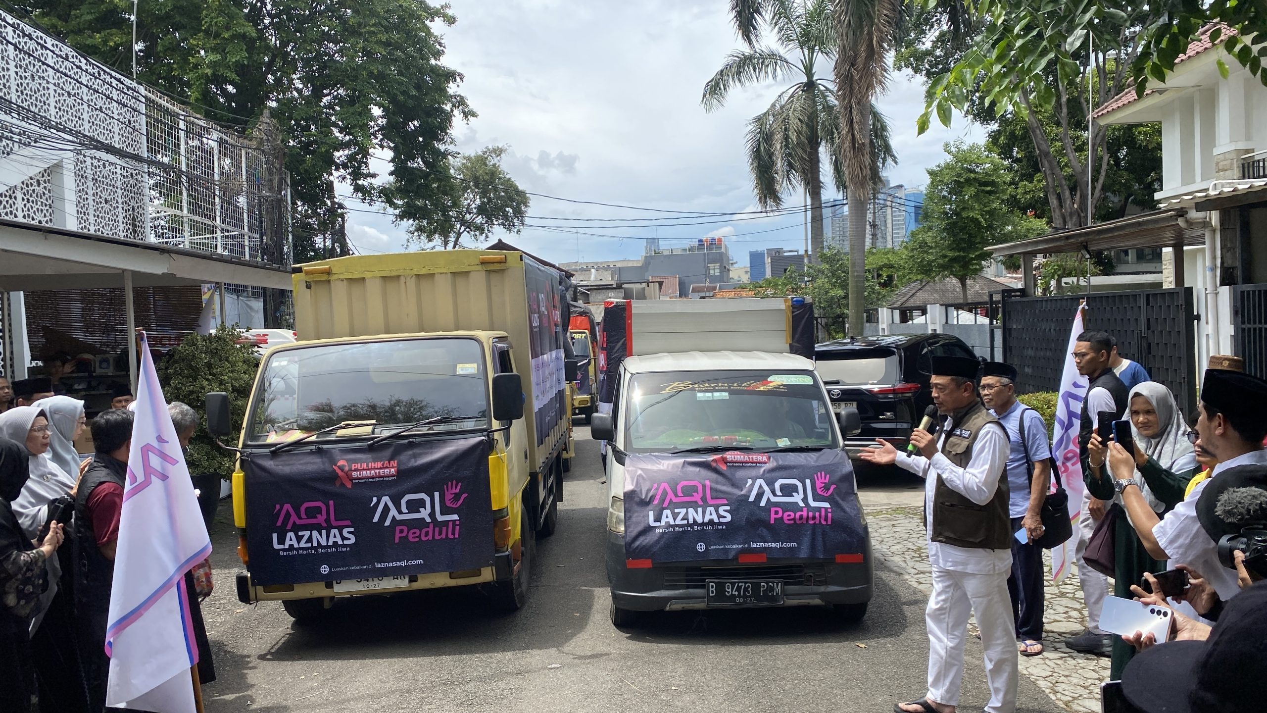 INAnews.co.id, Jakarta– Laznas AQL Peduli memberangkatkan lima truk berisi 20 ton bantuan logistik kemanusiaan untuk korban bencana di tiga provinsi Sumatra: Sumatra Utara, Sumatra Barat, dan Aceh. Pelepasan bantuan yang dipimpin langsung oleh Pembina Laznas AQL Peduli, Ustaz Bachtiar Nasir (UBN) ini dilakukan di Masjid Baitul Maqdis AQL Islamic Center pada Ahad (14/12/2025) setelah salat Zuhur.