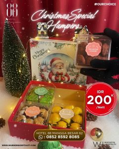 Selain itu, Hotel 88 Mangga Besar 62 juga menghadirkan Christmas Hamper dengan harga IDR 200.000 nett, berisi empat varian cookies pilihan yang dikemas secara elegan, cocok sebagai bingkisan Natal untuk keluarga, sahabat, maupun rekan kerja.