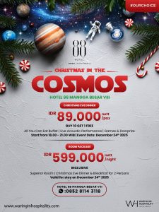 INAnews.co.id, Jakarta – Hotel 88 Mangga Besar VIII menghadirkan dua rangkaian perayaan akhir tahun bertema kosmik yang menawarkan pengalaman unik bagi tamu dan keluarga.