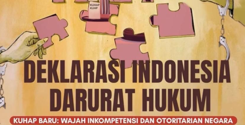 INAnews.co.id, Jakarta– Koalisi Masyarakat Sipil untuk Pembaruan KUHAP mendeklarasikan Indonesia dalam keadaan darurat hukum menyusul disahkannya KUHAP baru (UU Nomor 20 Tahun 2025) yang akan berlaku 2 Januari 2026 (hari ini). Dalam konferensi pers di Jakarta, Kamis (1/1/2026), koalisi menyebut pemberlakuan KUHAP dan KUHP baru sebagai “kejahatan kemanusiaan yang lahir dari sistem pemerintah yang abai.”