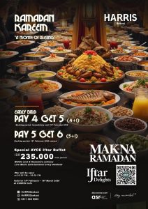 Mengusung tema “Ramadan Kareem – A Month of Blessing”, hotel bintang 4 yang memiliki fasilitas lengkap ini menawarkan ragam sajian khas Middle East & Nusantara culinary yang dikemas dalam konsep berbuka puasa yang nyaman dan berkesan. Suasana Ramadan semakin istimewa dengan kehadiran live music entertainment setiap akhir pekan di HARRIS Café.