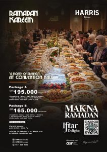 Sementara itu, bagi tamu yang ingin menikmati konsep buffet sepuasnya di HARRIS Café, yang memiliki kapasitas ampai dengan 300 orang, tersedia Special All You Can Eat Iftar Buffet dengan harga Rp235.000 net/orang, menghadirkan aneka hidangan dengan pilihan yang lebih bervariasi, lengkap, dan menggugah selera.